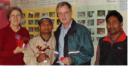 Acting Locally in Maine: We intend to report more fully in June, our 10th Anniversary, on many local voluntary projects begun. Briefly, a new office is nearing completion as we begin renovating a barn on a tidal estuary pond into an educational center for environmental education and for peace through a sustainable human ecology. Dr. Emily Markides has inspired students from her course 'Building Sustainable Communities' to assist in this as a practicum, coordinating through intern Bill Giordano. Cloe Chunn is actively engaged with the Belfast Bay Watershed Council, leading us into more watershed restoration training and activities, including those of the Penobscot Stewards. Exploration of the Marsh Stream watershed uncovered local testimony of a small population of native salmon, of interest to Inland Fisheries. We also planted fruit trees and hundreds of IP-donated red spruce on coastal lands. Looking forward: In Maine, willow scions sought for shoreland erosion control by a Penobscot elder and brown ash seedlings donated by Shana Hanson of Living Landscapes, await spring planting. This spring, in response to a request for help with mangrove restoration from the east coast of India, I studied mangrove ecology in the Philippines and Thailand, including at the Institute for Marine Research in hard-hit Phuket. The tsunami has prompted more of such partnership proposals and lent them priority. Mangroves serve a vital role in protecting coasts and as a nursery for marine life. While continuing in Nepal, we will seek to support local efforts to restore these invaluable forests of the sea, as a component of restoring sustainable fisheries for tsunami-devastated communities. I hope this gives you a glimpse into the impact of your generosity, as well as an expanded sense of community in which people of good will contribute as their diverse abilities allow. Thank you for all you contribute to this community. Let us continue together. |