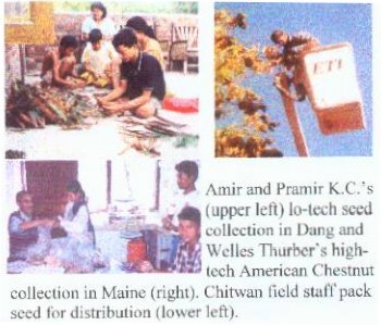 During 2000, this program extended west in Nepal to other politically disturbed but ecologically vital areas, Bardiya and Kailali. There we provided seed of many speciess for many villages under the supervision of CARE allies, including much sought viable bamboo seed.