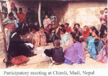 Nepal's young democracy faces increasingly harsh challenges from Maoist/police violence, particularly in western districts. We renewed our commitment to some of these most desperate areas of Nepal. From Madi we brought two village leaders: Bhagrathi Mahato (above in tan shawl) and Yuva Raj onto our staff to help us reach more villages and households with our forest tree Nursery/Plantation and Integrated Ecology programs. With the help of Diwakar Poudel (right in blue shirt) we began a new program in Rukhum, a remote western hillside district at the epicenter of Maoist intimidation and violence. The Maoists demand food or money and people give, wishing no trouble. Police retaliate harshly against such "collaborators." Political apathy and fear grip villagers desiring only peace.