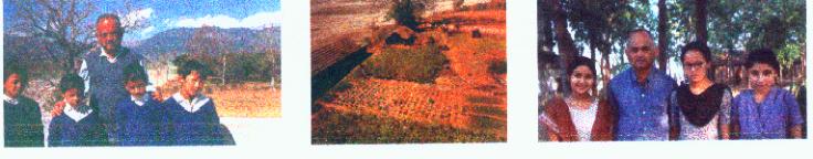 on the grounds of Tulsi School where our childrens program has been so active with tree seed gathering and planting. Principal Bishma K.C. wanted to plant one as a gift to each retiring teacher. We also grew and planted sandalwood, the sacred bead tree, and the medicinal vijaysal in a registered religious forest or sacred grove The photos below show the same schoolyard; in 1996 (lower left) with Principal Bishma K.C., and (lower center) from the roof of the school. And (lower right) in 2001 from the ground behind the school - the same area. Trees now shade the area, while preventing wind and rain erosion.