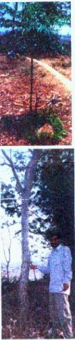 Included was a second cutting of a regenerating tree, which brought full price. This ability to regenerate has helped make Melia azaderacht our most popular tree as well as its rapid growth and utility. Its leaves feed goats, branches are good firewood and it yields a furniture grade hardwood. The new Tree sprouting at right is likely to grow even more quickly than the first, now cut and sold, whose established roots will nourish it. In Dang we saw more long-sought successes with rare species. At right Dang Program Manager Ved Bahadur K.C. stands in April 2001 with one of many endangered and valuable black rosewood, dalbergia latifolia trees planted in 1996