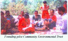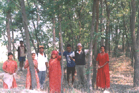 Without education, this Badi girl would be likely to follow her caste role: prostitution. She is one of five Badi girls being sponsored through graduation from Tulsi Boarding School. Only with better alternatives will such social, economic and environmental desperation be overcome. A generous matching offer from another anonymous individual led us to develop a proposal for Dang with the UN Development Programme's Global Environment Facility. However with Dang's state of emergency, UNDP's partnership is on hold. UNDP/GEF Coordinator Gopal Sherchan's suggestion of community environmental trusts, led us to extend resources and empower self-determination for Integrated Human Ecology IHE. Gidhaniya's Women’s Group had already developed a community forest with SeedTree’s help and started a savings group. This we endowed as an experimental environmental trust. All 41 women members guarantee each loan made to a member for such environmentally sound projects as improved efficiency stoves, biogas plants, toilets, wells, pumps, irrigation, horticultural or forest tree nursery and planting. While not all work is finished, already they have done more than with our previous grant system. One toilet and four tube wells (pumps) are completed. Three more are in progress. One woman has begun goat rearing. The group planted 400 new seedlings into their little Community Forest, which will more than offset any adverse impact of the goats. As the money is repaid, it will remain in their community: a revolving, growing, working asset. This hopeful project developed through dialogue between staff, the donors and doers. Amidst impinging Maoist violence such trust is deteriorating widely. Members fear to keep all records in one place. It presents greater risks, but far greater potential rewards. We will be expanding our trust experiment into 2 more districts in 2002. Where democratic values are assailed it is easy to see how vital they are. Even forests need their people to have a stake and voice in maintaining them.