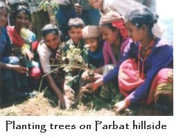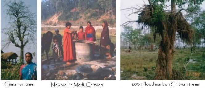 Donor Partners large and small sewed seeds of 2002's success. We are particularly grateful to those allowing us flexibility to the changing conditions within Nepal. One special donor, impressed with SeedTree’s cost-effectiveness and follow-through, challenged SeedTree to see what we could do with a $10,000 matching grant. Debley Foundation, OUEST (Occidental United Eastern and Southern Transfers) and a private donor provided the match. This faith and generosity enabled SeedTree to start 2002 by proposing to the UN Development Programme’s / Global Environment Facility / Small Grants Programme (GEF/SGP) an Integrated Human Ecology Project (IHEP) to serve two adjoining municipalities in Parbat. ![]() Pending a decision from UNDP/GEF/SGP, we embarked upon a new season in our on-going SeedTree program, adapting to the escalating domestic strife. Frequent national shutdowns, destruction of infrastructure and terrorism hamper progress. Yet our steadfast support is appreciated more than ever. We began what appeared a very promising program in Gulmi, but lost contact after rebels destroyed Gulmi's transmitter. In April, we withdrew from southern Parbat after a range post, temporarily storing seed and nursery bags for two villages, was burned. In Dang, too, arson damaged an office of the Tulsi Boarding School where we send five girls, but no injury occurred. The girls are fine. They are doing well in school, triumphing over stereotypes associated with their abject caste status. All Dang’s delayed 2001 work is now done. The delayed deep well was completed under budget, allowing an extra 3 biogas plants to be added to the 3 built this year. ![]() We are also making quiet but steady progress there with nurseries and particularly, with improved cooking stoves. Avoiding public gatherings or training workshops, stove maker Sakkal Chaudhari goes from home to home, completing 23 improved stoves to date. Our central Chitwan Program continues peacefully and productively, continuing to attract new groups requesting our program. Among the trees planted in Chitwan were 40,000 mulberry trees, grown from cuttings. The versatile mulberry also provides fruit and fodder for cattle. With the silkworms we provided, growers can earn over $1,580.00. Some of the farmers are raising more silkworms to continue the program. This year we found good seed for cinnamon in Kaski. This desirable species is often cropped, as in Chitwan (below), so as to produce little seed. Prem Neupane, now coordinates with administrators and student groups at the Institute of Forestry, Kaski, where we supported a demonstration and research nursery, particularly for non-timber product producing trees. Prem also organized a three-day workshop there for key people from IOF, Parbat and Tanahu, covering a host of integrated topics. ![]() The 2001 flood mark from Chitwan (above) reveals typical flooding. Annually monsoon rains wash away 40 million tons of soil. The 2002 monsoon brought the worst flooding in three decades with destruction of lives, lands and property. It took a heavy toll on our nurseries, particularly in hill districts. ![]() Yet the photos above - all in Parbat - reveal the promise of our perseverance. New roads exacerbate already severe erosion. Yet, our nurseries, like this one in Durlung, stock beneficial community tree planting projects as on Pang hillside, 3rd photo. In the 4th in Jauri Community Forest, Kurkot, Hem Raj Sharma shows results 18 years after he led such community reforestation on bare hillside. The forest attracts wildlife that bring in seeds of many non-planted species. It halts erosion, provides abundant firewood and ample timber for members. We supported a nursery for profitable enrichment plantings of valuable species growing well in the forest’s protection. Jauri Community Forest User Group is now developing a few non-timber forest products such as broom grass. We proposed an innovative market incentive approach to assist this latter stage of community forest management in our proposal to UNDP/GEF/SGP: to implement a system of certifying forest products: "sustainably grown and harvested." ![]() This proposed innovation was key to our receiving on Earth Day, April 22, 2002, the good news that SeedTree Nepal’s Integrated Human Ecology Project was accepted by the UNDP/GEF/SGP. STN is now implementing this two year project serving two adjoining municipalities: Kurkot and Durlung of Parbat District. OUEST, had joined in partnership pledging $4000; SeedTree will contribute $8000 and management resources; as will GEF/SGP provide $45,000. The municipalities have also pledged support. 75% of these funds will go directly to the communities for human resource development, small grants and endowments to the Community Environmental Trust Funds, providing extraordinary opportunities to improve conditions in these communities. IHEP’s workplan details and schedules output-specific objectives: for biodiversity conservation, improved water quality and to reduce soil erosion into international waterways, implement certification of "sustainably grown" forest products, promote renewable alternative energy resources, improve socio-economic condition in the communities, develop manuals, documentation and outreach materials, etc. IHEP is now mobilizing community organizations which will form the Community Environmental Trusts. Our SeedTree Board Chairman Dr. Tom Hammett, has been teaching us and our friends in Nepal, about forest certification for several years. While in Nepal to evaluate their forestry for USAID, Dr. Hammett presented the topic with slides June 10th at GEF/SGP, Kathmandu. Representatives of STN, GEF/SGP, SeedTree Director Carol Kinsey, community leaders from IHEP, and other interested persons attended the working session. All saw great potential rewards for Nepal, especially for getting returns to those at the local level. Already Sampson Lumber in Maine has expressed interest in purchasing certified fo