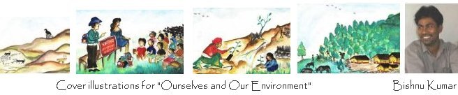 New approaches added this year: As SeedTree envoys were bicycling last year to project sites in the remote area of Chitwan called Madi, leaders of Dikurbari (Dove Garden, left) village halted us on the path, requesting teachers for the simple schoolhouse they had built. Their request prompted us to develop a rural environmental education course, publishing a 56 page illustrated manual: "Ourselves and our Environment," written in clear and simple Nepalese by our Program Manager, Bishnu Kumar B.K. (Madab K.C.’s cover illustrations, below). ![]() One teacher, usually a woman selected from the community, receives training to teach topics, lead discussions and evaluate progress. The manual explains concepts, identifies problems and proposes solutions. From the home with family hygiene, fuel and waste management, topics range from kitchen gardening, soil, its fertility, erosion and conservation; causes, effects and reversal of deforestation, regeneration of declining species, seed collection, establishing and managing private and Community Forests, agroforestry, air, water, pollution, climate change, biodiversity importance and conservation. We are conducting these Environmental Education classes in 6 Chitwan villages, and preparing soon to teach more in Parbat. We extended use of Community Environmental Trust Funds, successfully piloted last year. An anonymous couple sponsored one at Dikhurbari, Chitwan and we started three in Parbat. By extending micro-credit to community members for their own ecologically beneficial projects, these trusts keep our endowed resources working in the communities to revolve and grow indefinitely. We are carefully developing trusts to foster self-reliance and multiply benefits. In addition to biogas plants, we added to our renewable and energy conserving technologies, education in utilizing solar energy options for water heating and electricity. We also began a program for improved smokeless cooking stoves (ICS) in three districts. Like the traditional stoves they replace, ours are made with local clay and stone, but improve efficiency, conserving about 25% firewood, saving gathering time and forest resources. The added chimneys contribute greatly to a healthy home environment, particularly benefiting women and small children. While biogas plants usually require a cow or buffalo, our stoves benefit even the poorest homes.