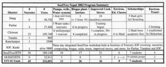 Unexpected opportunity led us to concentrate this year with SeedTree Nepal. We are pleased to report progress and promising new approaches, program areas and alliances.